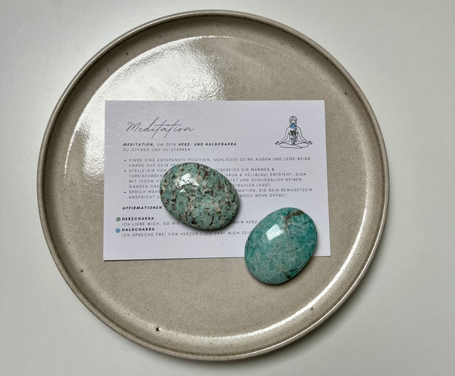 Dein Amazonit ist ein Unikat, wird von mir intuitiv ausgesucht und kann leicht von den Steinen auf dem Foto abweichen. Die beigefügte Karte im A6-Format hält auf der Vorder- und Rückseite schöne Impulse für deine spirituelle Persönlichkeitsentwicklung bereit.